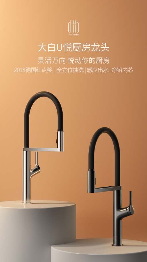 大白U悦厨房龙头于2018年取得德国红点奖,造型美丽,运用便当。龙头支臂能够300°旋转,也可将U悦管取出自在冲刷,冲刷台面更痛快,部分清洁更完全。抽出柔软有弹性的U悦管,可将水花聚集在你想要的恣意方位。手握U悦管,不管是接水、冲刷蔬果碗筷,仍是整理水槽壁角,都更自在。磁吸技能助你轻松将U悦管归位,拿取更自若。
